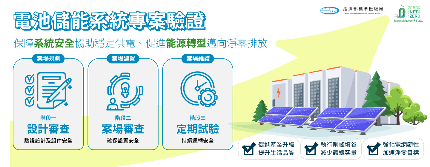 經濟部標準檢驗局實施「電池儲能系統專案驗證」 三階段保障儲能系統安全,協助達成淨零排放目標